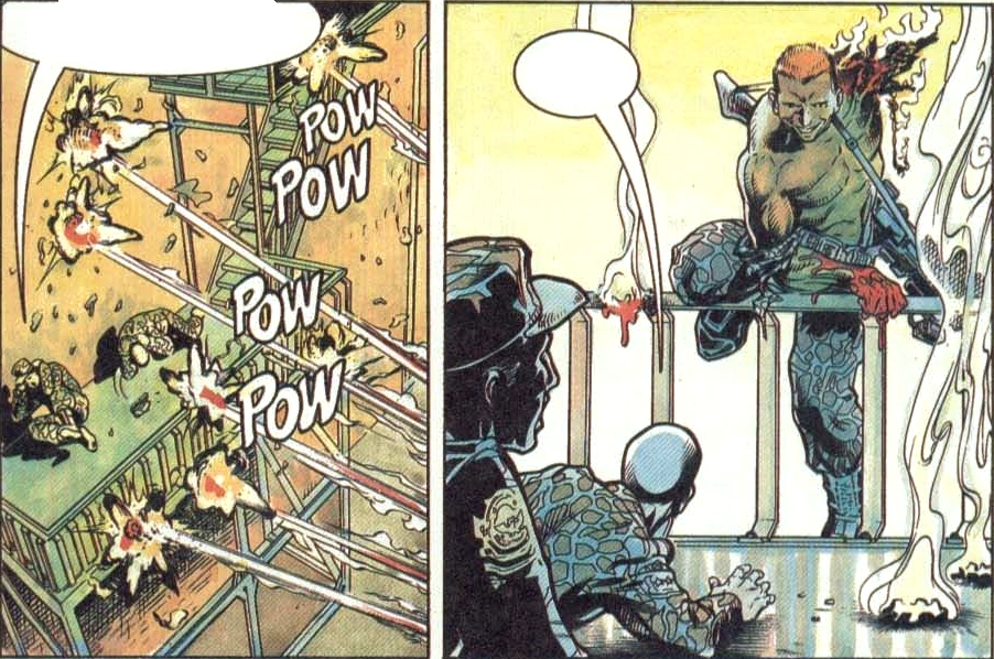 A közlegény a tömegbe veti magát és verekedni kezd. Senki se tudja megállítani, sőt, Willie ráugrik az egyik katonára és eltöri a nyakát, bár kevésen múlott, hogy le nem tépte. Az emberek futni kezdenek, de a berzerker utolér kettőt, akiknek fejét összeüti, majd egy harmadikat is kiüt. Glen üvöltözik a rádióba, fegyvereseket akar, de nem veszi észre, hogy a közlegény a hátába került és kitépi a kezéből az adóvevőt, amivel péppé veri a tizedes arcát. Leon azonnal értesíti a fegyvereseket, egy gépfegyveres és egy gránátvetős katona siet a helyre, de ők se tudják megállítani a férfit. Pinnock elveszti ugyan egyik karját és a lövedékek is eltalálták, de valahogy eléri a géppisztolyost és elveszi a fegyverét, amivel végez a két alakkal. A berzerker körbenéz és meglátja Leonékat. Azonnal odalő, de a két felettese még időben az irodába húzódott. Leon a falról leakaszt két Hyper géppisztolyt, az egyiket odadobja a tábornoknak, míg a másikkal tüzet nyit. Nem találja el a célt, Pinnock pedig eléri őket. A félszemű és karú közlegény vérzik, teste fele összeégett és az sem állítja meg, hogy Delmore eltalálja. A közlegény talpra verődik és egy sorozatot ad le, ami semmit se talál el. Leon az első keze ügyébe kerülő fegyvert, egy páncélökölt húz elő, amit megtölt és közelről lövi ki a rakétát. Willie a balkonig repül, majd ott a robbanófej detonál, apró darabokra szaggatva a berzerkert, akiből még egy bakancs se marad.