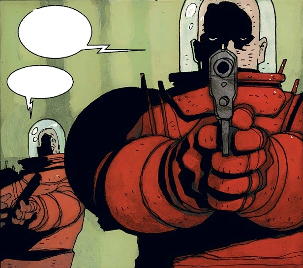 Az egyik férfi a térdig érő vízben a halottnak tűnő predator felé hajol, ami óriási hibának bizonyul. Hirtelen a biojelek beindulnak: a ragadozó nem volt halott, csak lelassította a szívét, így becsalva az embereket. A balszerencsés férfit azonnal átdöfi, majd a fából készült lándzsát az egyik fegyveres koponyájába vágja. Két biztonsági használja a tasert, de a ragadozó élő pajzsnak használ egy medikust, így az kapja be a találatokat. Palliser pisztolyt ránt, ő nem hagyja, hogy a bőre trófeaként legyen kifüggesztve és lőni fog. Társa hiába próbálja megállítani, a pisztoly elsül, berobbantva a levegőt és azonnal megölve Pallisert és egy másik őrt, míg a parancsnokot, Koeniget hátraveti és bezúzza a sisakját.
